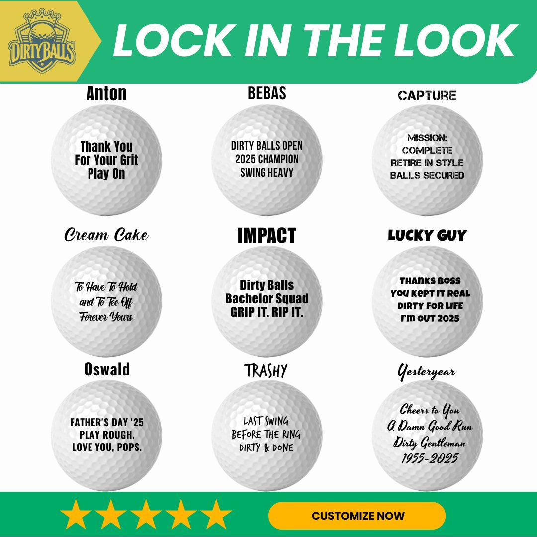 This ain’t your average golf ball. This is a Dirty Ball—upcycled, and back for more. It’s been through some sh*t, seen the rough, and now it’s ready to roll again with a new purpose. Personalized Golf Balls, Business Logo Golf Ball, Golf Gifts for Business, Company Golf Balls, Business Golf Gifts, Groomsman Gift, Bachelor Party, Wedding Party, Scramble, Golf League, or Gift for the golfer.